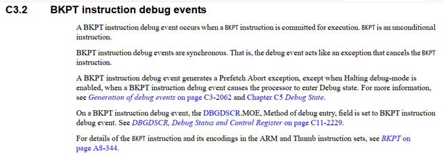 代码中加入BKPT指令之后,希望运行到BKPT代码后能触发监视相关的异常中断,该怎么实现?