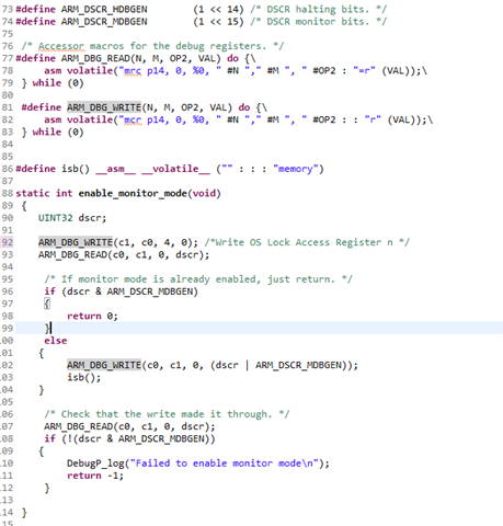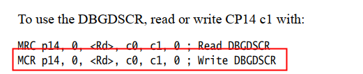 因此我先设置DBGDSCR的MDBGen位置1,用以下代码设置: