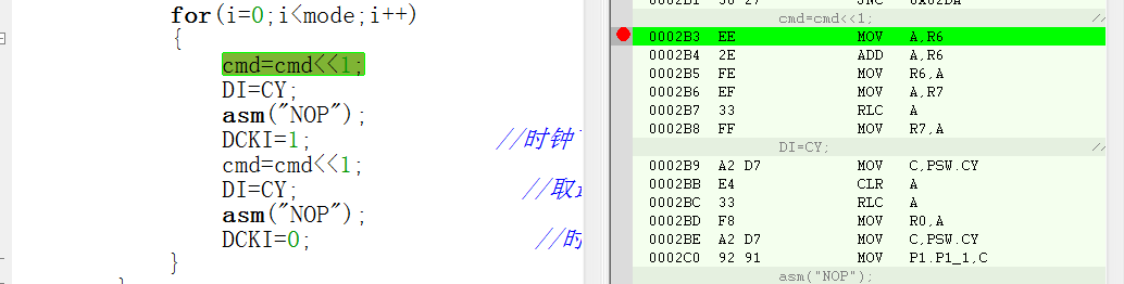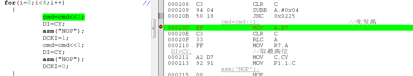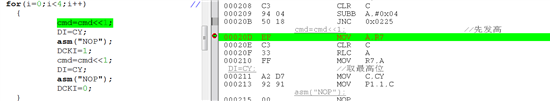 1. C语言处理 cmd<<=1 与 cmd = cmd<<1是一样的,重新编译结果显示汇编代码一样。