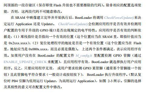 1.我自己写一个应用程序(m4_update),基于project那个例子修改的,里面做了这样几件事情,main()函数中,初始化串口0(作为调试程序打印消息)和GPIO引脚(PB2作为输入引脚),然后读取PB2的值,如果为高电平(需要升级),则进入我的Updater()函数(这个函数是直接使用boot_serial那个工程中的Updater函数),否则就不需要升级,然后就直跳到我自己写的另一个点灯程序(m4_led)。