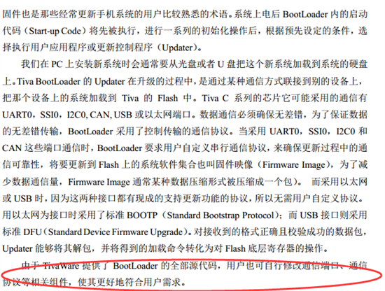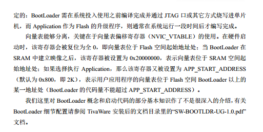 我使用的是TivaWare BootLoader user's guide --SW-TM4C-BOOTLDR-UG-2.0.1.11577 这个手册,平台硬件是TM4c1230H6PM的处理器,开发环境为Keil。