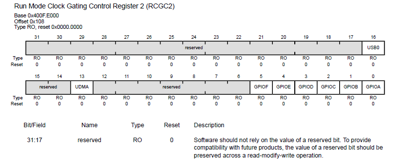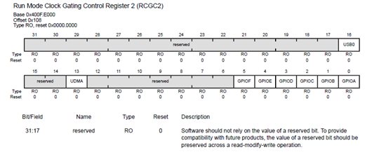EK-TM4C123GXL launchpad的blinky例程,RCGC2寄存器的使用