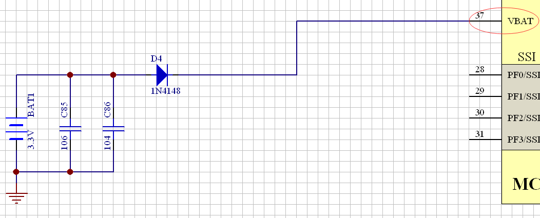 请问在使用用TM4的RTC的时候,为了在掉电时仍保存数据,如图所示的BAT管脚增加电池的接法是否适当?