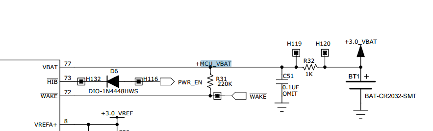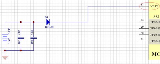 如题:请问在使用用TM4的RTC的时候,为了在掉电时仍保存数据,如图所示的BAT管脚增加电池的接法是否适当?