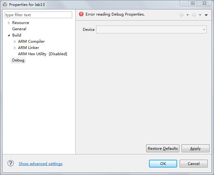 ccsv6导入已有工程时,无法debug,查看工程的debug属性如下图,请问在哪里修改?