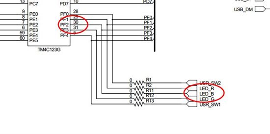 可是,在TM4C中不是这个样子的,这样子是不会点亮LED的,应该是这个样子