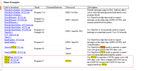 你好,有没有有关TM4C129X,PWM的例程呀,我在用DK-TM4C129X开发板,我是新手,想找下PWM的例程学习下,谢谢了