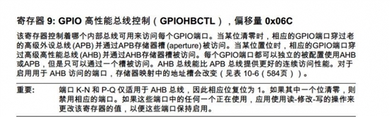 1.关于时钟的问题,TIVA的GPIO时钟可以选择挂在APB总线上或者挂在AHB总线上,复位后是默认挂在APB总线上的。因此这个选择使用默认的了,当选择AHB的时候需要用到这个函数 SysCtlGPIOAHBDisable(SYSCTL_PERIPH_GPIOF);//使能GPIO的AHB时钟,默认是通过APB时钟访问的