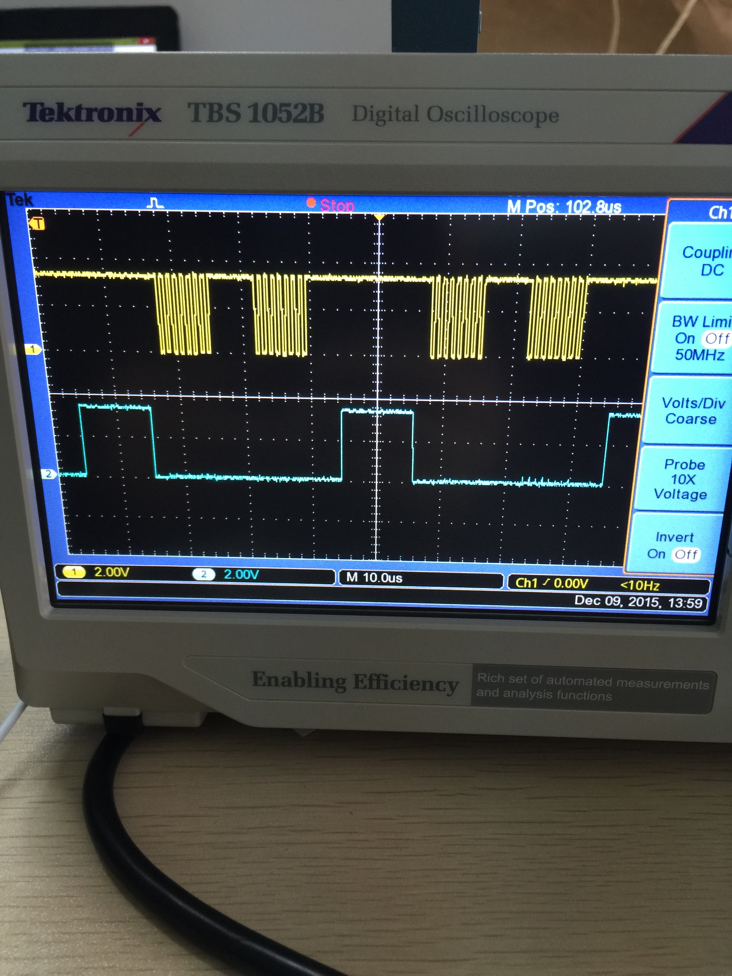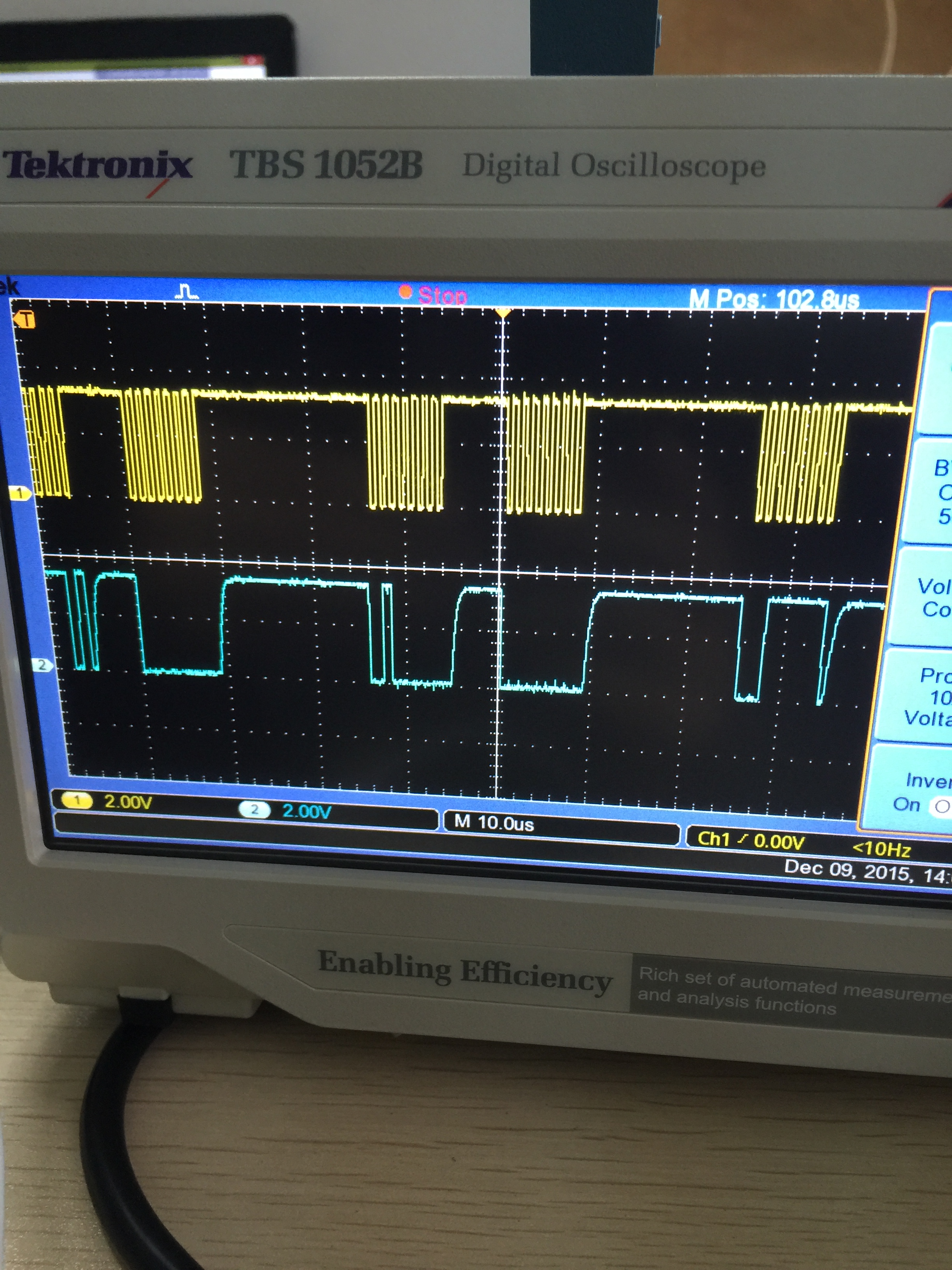 问题1: 用示波器观察PA5引脚的数据发送情况,发现接和不接传感器时波形不同?图一为不接传感器。图二为接上传感器后,在时钟空闲时仍存在数据变换,但是都是一些无用的数据,应该没有影响的吧?