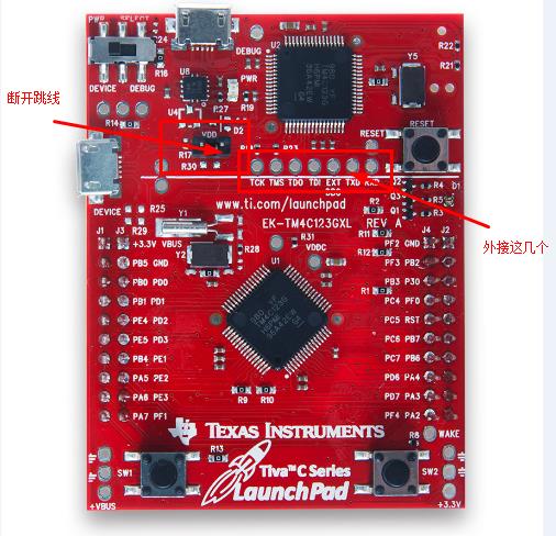 我现在是拔掉跳帽,接了那四个脚,ext接地,两块班子GND互连,reset接到目标板的复位脚。CCS里选择TIICDI,但是不能烧写,显示无目标