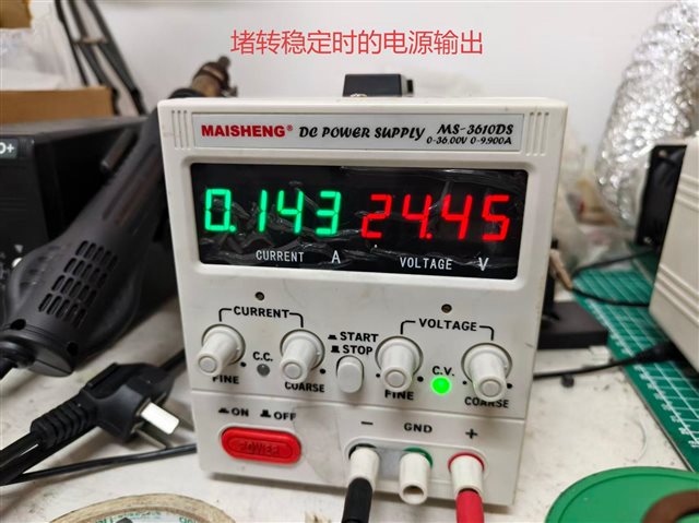VREF = 5V时,正常工作电流在0.55A,运行到堵转位时,电流被钳位在0.033A左右