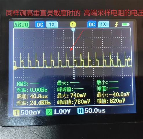 第二种情况,在使用1Ω的采样电阻时,我对VREF选取几个电压来测试(VREF都是电阻分压得出,且在正常运行时,并没有电压波动)