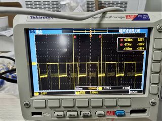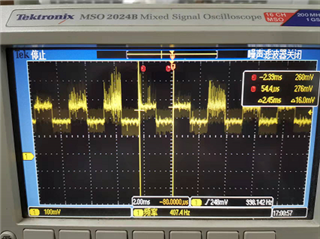 你好,是这样的,当我把电机的en引脚和nsleep引脚均置为高电平之后,电机便开始振动,后续给电机输入步进信号它依旧保持振动没有变化,由于没有电流监测的设备,我在步进电机和驱动板aout1引脚之间串入了一个3欧姆的观测电压,观测到的电压如图1所示,同样方法观测bout1无输出,给步进信号后无变化,步进信号如图2.至于vref,我是通过控制板dac输入的2.9v左右的电压(因为我的电机的驱动电流是1A的),但是即使我将vref引脚空置电机在使能后仍会振动。