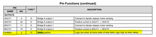 HOME脚不需要驱动,它其实是可以读的输出,当器件在logic table的主步骤(home step)时,它会提醒用户。应该是 45 度的步进角。 以下表格说明了它的功能:
