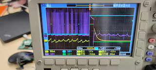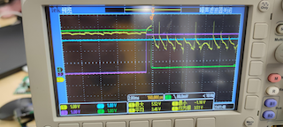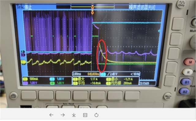 4、当IN1、IN2输入为一高一低正常控制电机转动过程中,有一定概率电机异常停止,用示波器测试IN1、IN2的输入没有变化 但OUT1、OUT2不再输出电压。且此现象只会出现在电机某一个转动方向上,而不是两个方向的转动都可能会出现电机异常停止。当电机异常停止时,FAULTn脚可能输出低,也可能仍旧是高阻态。
