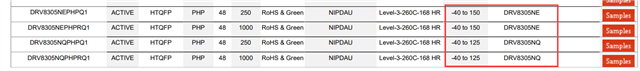 根据开发版的bom资料,显示8305的物料号为DRV8305NPHPQ1(没有说明是NQ还是NE)