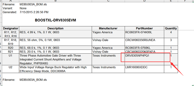 但是我在规格书上看好像没有这个物料型号,规格书上对于不带LDO的分为了俩种DRV8305NQPHPQ1和DRV8305NEPHPQ1,与BOM不都不一致,
