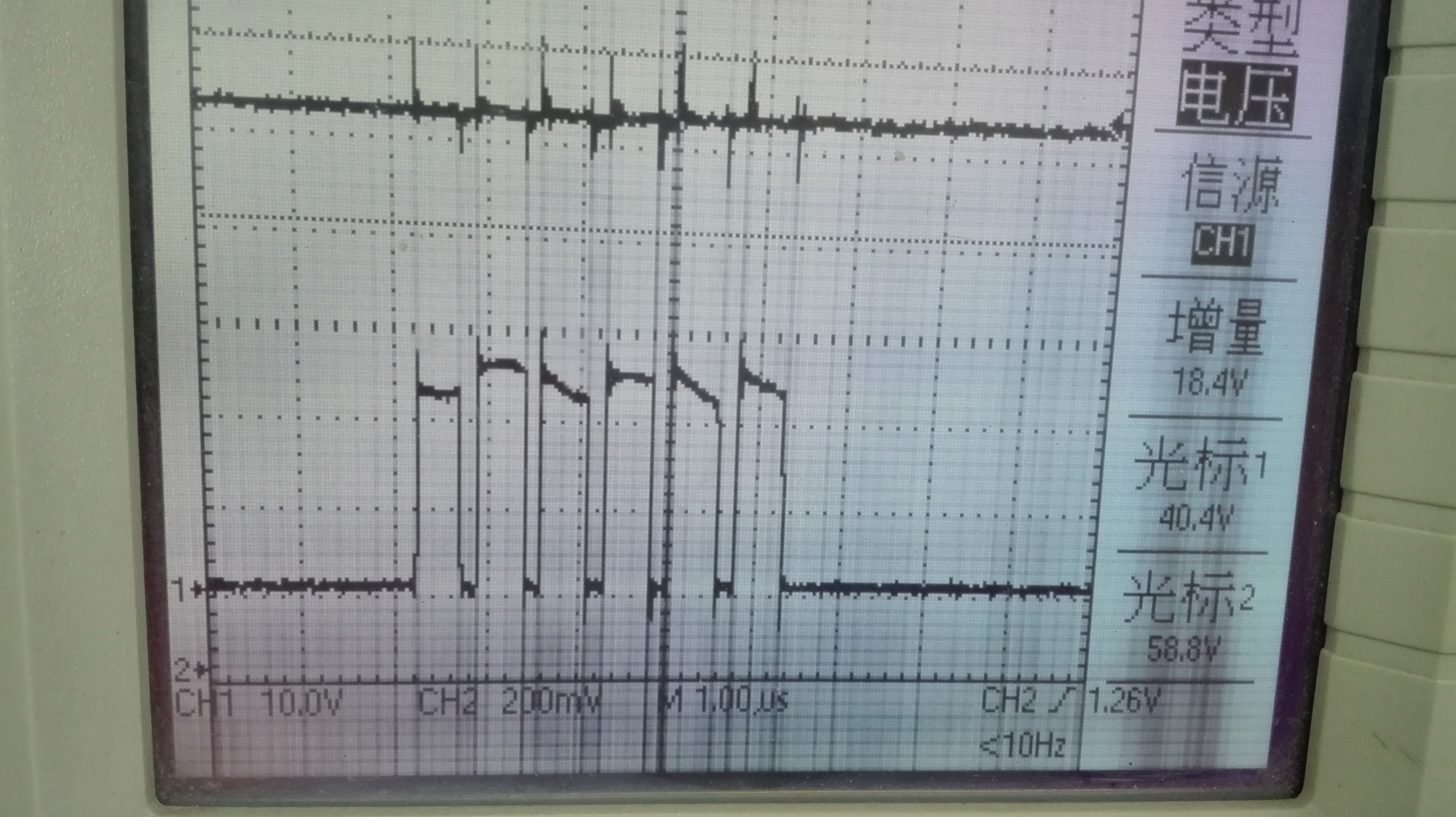 发现不能同时添加几个附件,这是最严重情况的震荡波形,CH2是反馈脚的波形