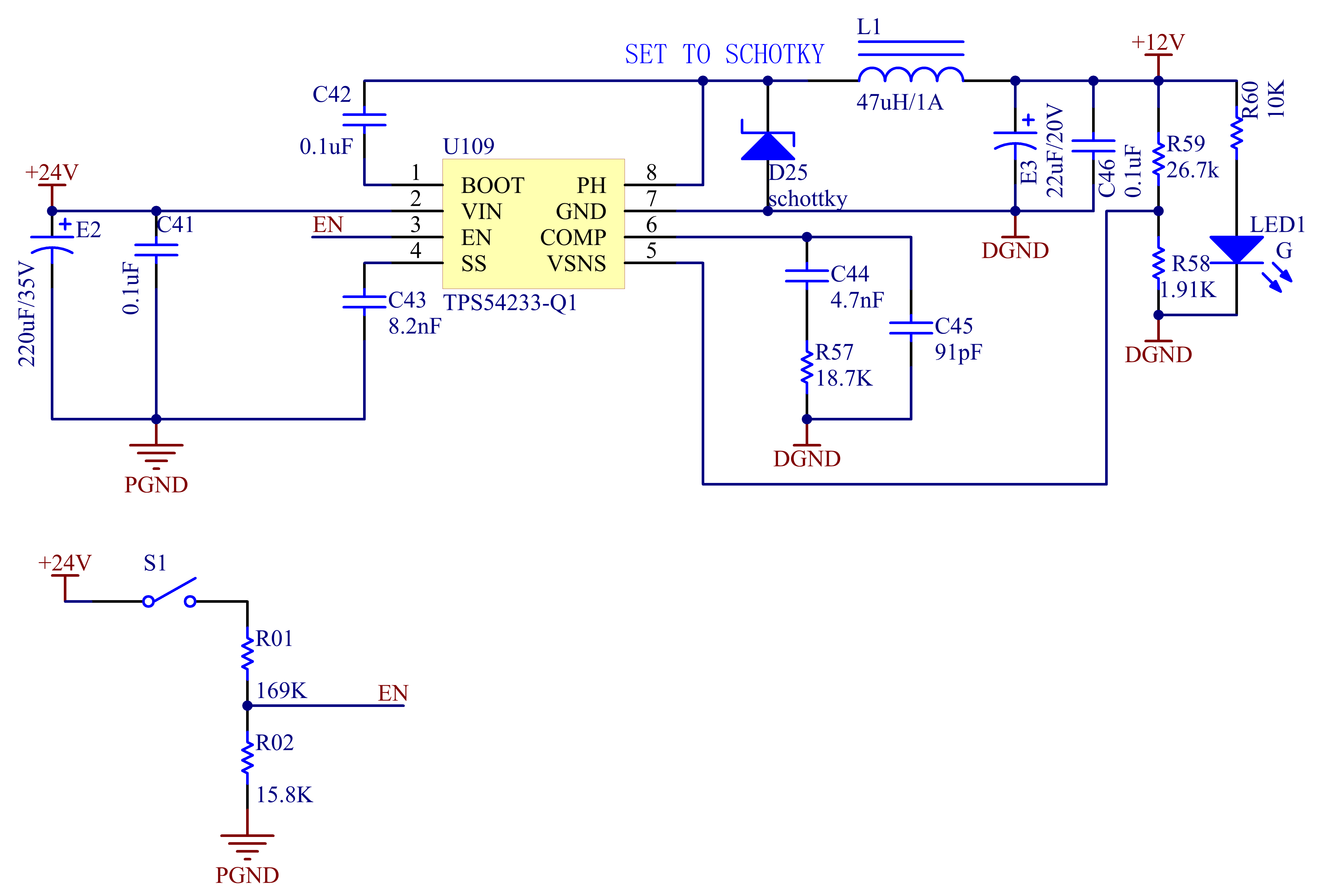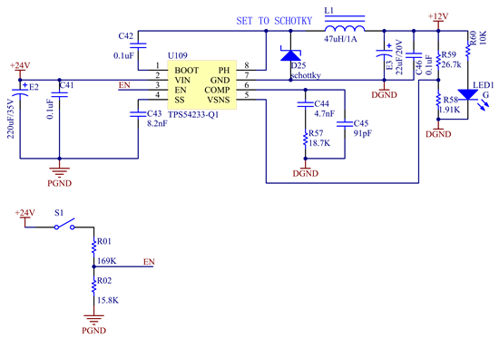 我的电路是这样的(如下为片子通过WEBENCH设计的,实际电路在EN-pin处有所改动,用作上电控制)