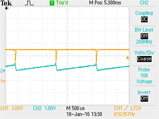 打开S1,电压缓慢抬升至24V,芯片进入保护,未能正常工作,现象如“情况1”中描述。