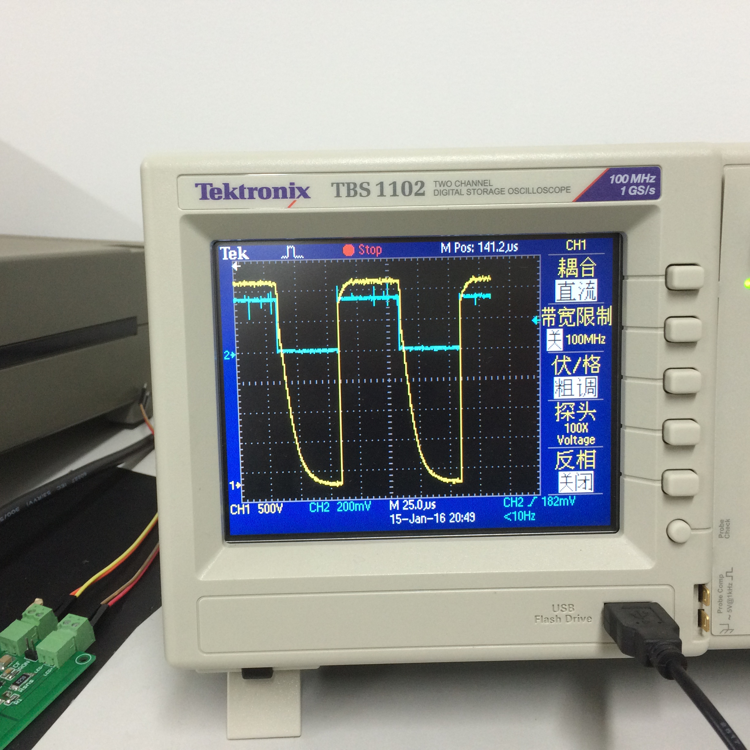 LM3409。输入电压36v,输出33V,3A,控制信号变为低电平后,LED两端电压变化速度慢,大概需要20us才能完全熄灭,所以在10KHZ时,控制不好。如图所示