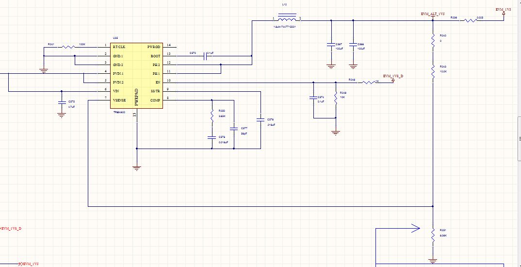输入电压:5V,想让tps54620输出1.5V,根据公式Rtop = (Vout-Vref/Vref) * RBottom,确定Rtop =10K,RBottom=11.5K,但是输出不是1.5V,而是0.65V,不知道为什么,原理图见附件