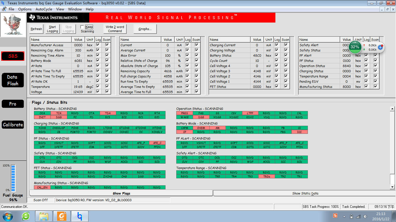 3、我们换了新的BQ3050后,在没有导入现有GG文件时显示充放电MOS开启,在导入GG文件,再输入复位命令0041后,也出现充放电MOS均关闭的现象;