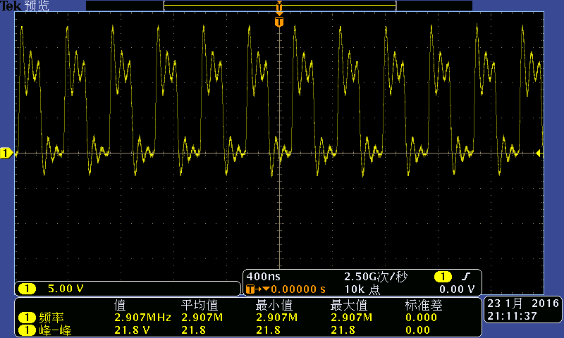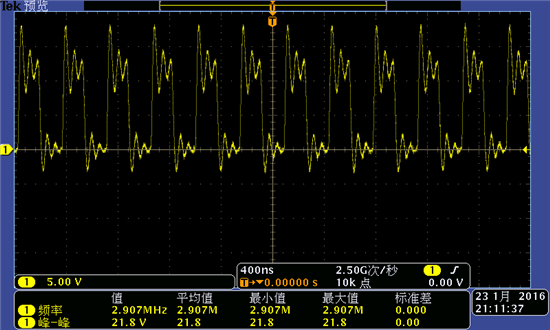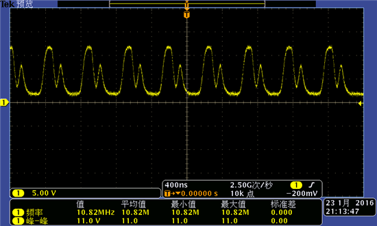你好,这整个波形都是错的,你输出电容上的RC是你计算的结果吗?另先试试空载和轻载工作情况,谢谢。