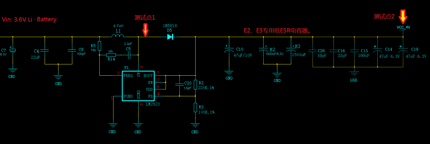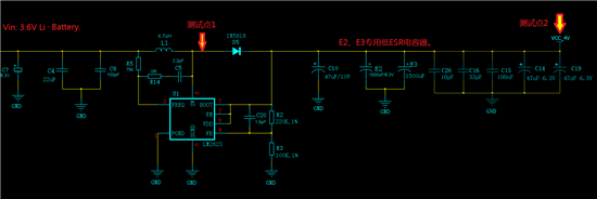 电路输入为3.6V单节锂电池,输出是4V供GPRS模块,发射瞬间最大有1.6到2.0A电流。