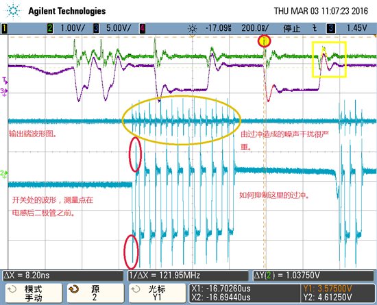 我使用LM2623 Boost DC-DC搭建的开关电源输出出现高噪音干扰,如何抑制?在不变更IC的情况下,如何改进电路请给出建议。