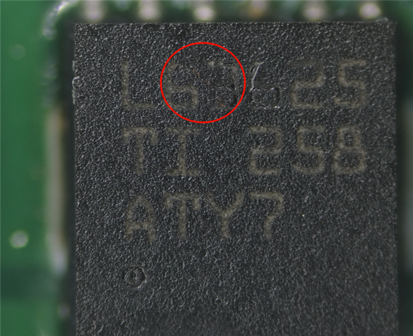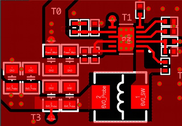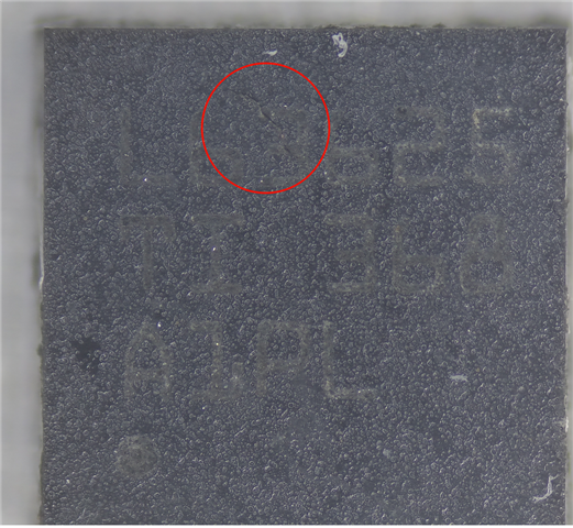 基于上述芯片设计的24V转6V的电源在正常工作不定长时间后,总是出现SW对地短路的现象,通过对未损坏的板卡测量SW波形,上升沿与下降沿过冲范围为【-1.6V -25V】,未超出手册范围。芯片来源于立创商城,前两批芯片未出现这种情况,最近一批芯片较易出现这种现象。通过观察损坏芯片的外观,发现均有明显损坏,如图所示。Layout也见下图。