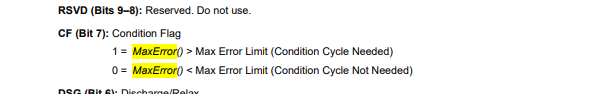 | MaxErr | RSOC | ASOC | SOH | RemCap | FullChgCap | ChgCurr | ChgVolt | BattStat | CycleCnt |