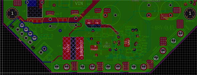 PCB 布局很好,除了缓冲器连接。如果您想看到 RC 缓冲器的最佳性能,缓冲器应连接在低端 MOSFET 的漏极与地之间,且不要通过过孔连接。