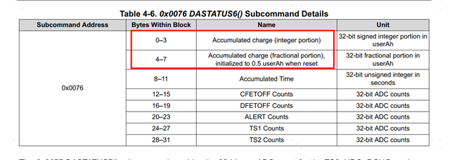 我想了解下BQ76952累积电量误差, 也就是0x0076 DASTATUS6()