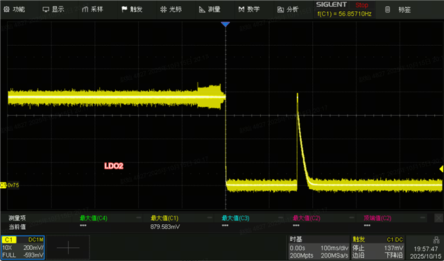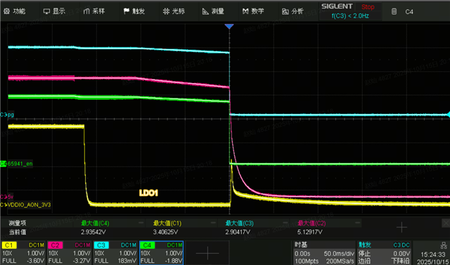 The current issue is that when the entire system is powered off using the sleep command, VOUT_LDO1 & LDO2 rises to around 2V after about 170ms and then falls back.