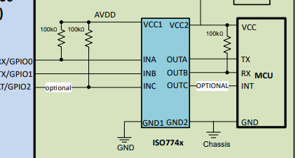在MCU与AFE通过UART通讯的设计中,采用了2个隔离电源UCC33421-Q1串联供电,2个隔离芯片ISO7731DWR实现数据传输,我有以下两个疑问: