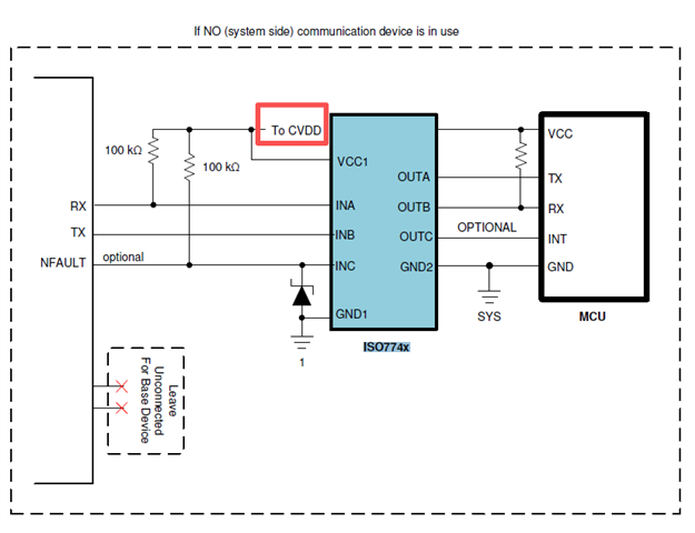 2.隔离芯片ISO7731DWR高压侧供电电源,能否使用基底AFE的CVDD引脚供电?这样可以省掉隔离电源模块,降低设计成本。我能想到这种设计的隐患是:容易造成基底AFE芯片对应的电芯能量消耗会比其他芯片对应的电芯大,容易造成堆栈电芯电压不均衡。