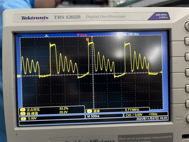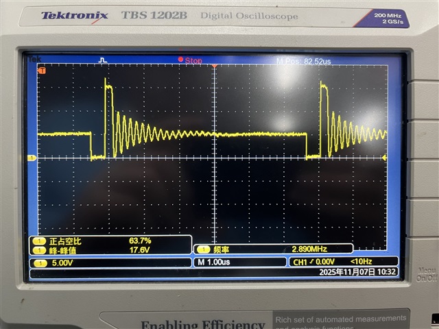 调整了负载,R16处分别给1K和10K;电荷泵的理论和实际的差值变了;负载10K的差值约2V,负载1K的差值约1V;SW波形如下