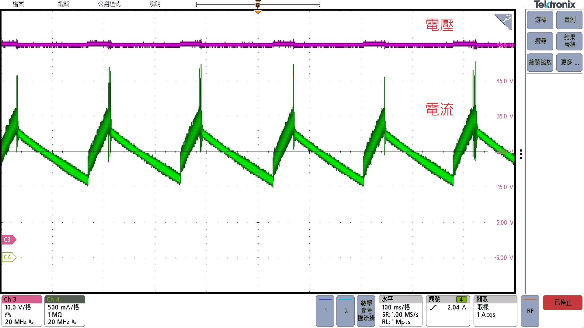 使用bq25756 IC電路設計充電器 (56V / 2A),在CV模式中充電電流從2A降至約1A會出現跳動情形 (波形如下圖所示),請協助可解決問題的方向。