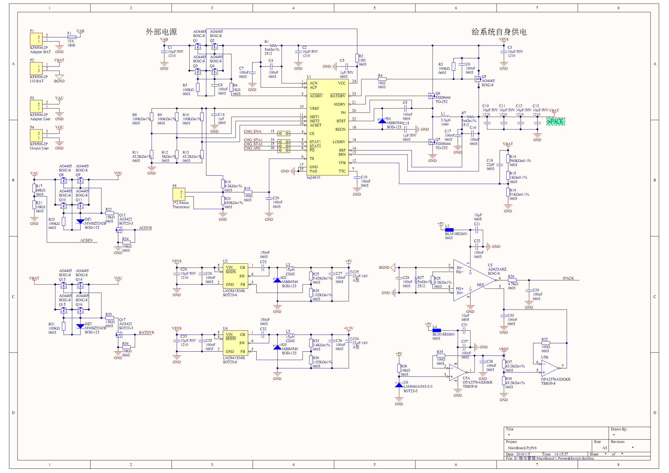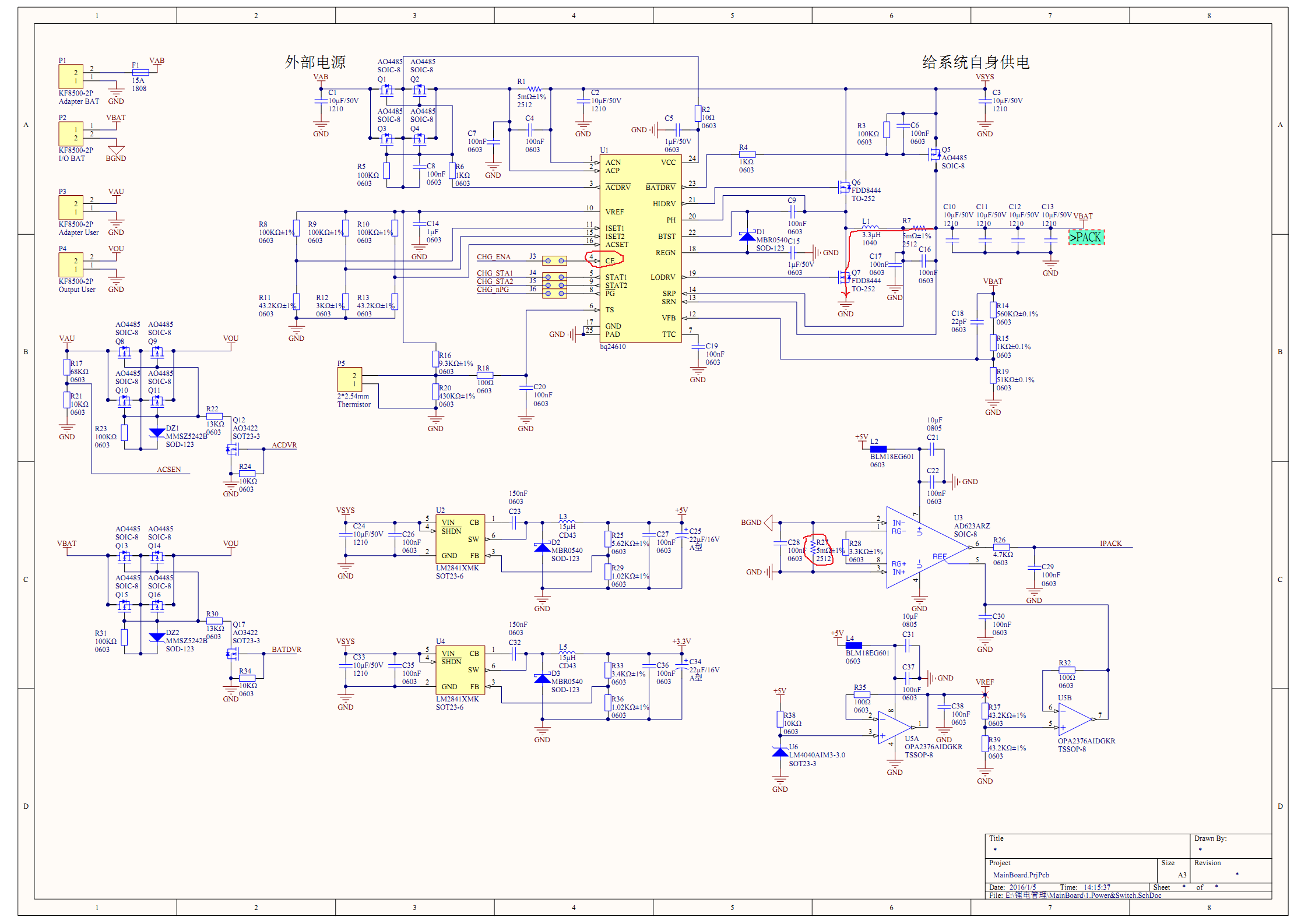 这个电路基本就是照着手册画的,对6串单体充放电正常,但是接6串电池包(32并)就会烧24610、 采样电阻R27 (5mΩ)、以及可能还有别的MOS之类