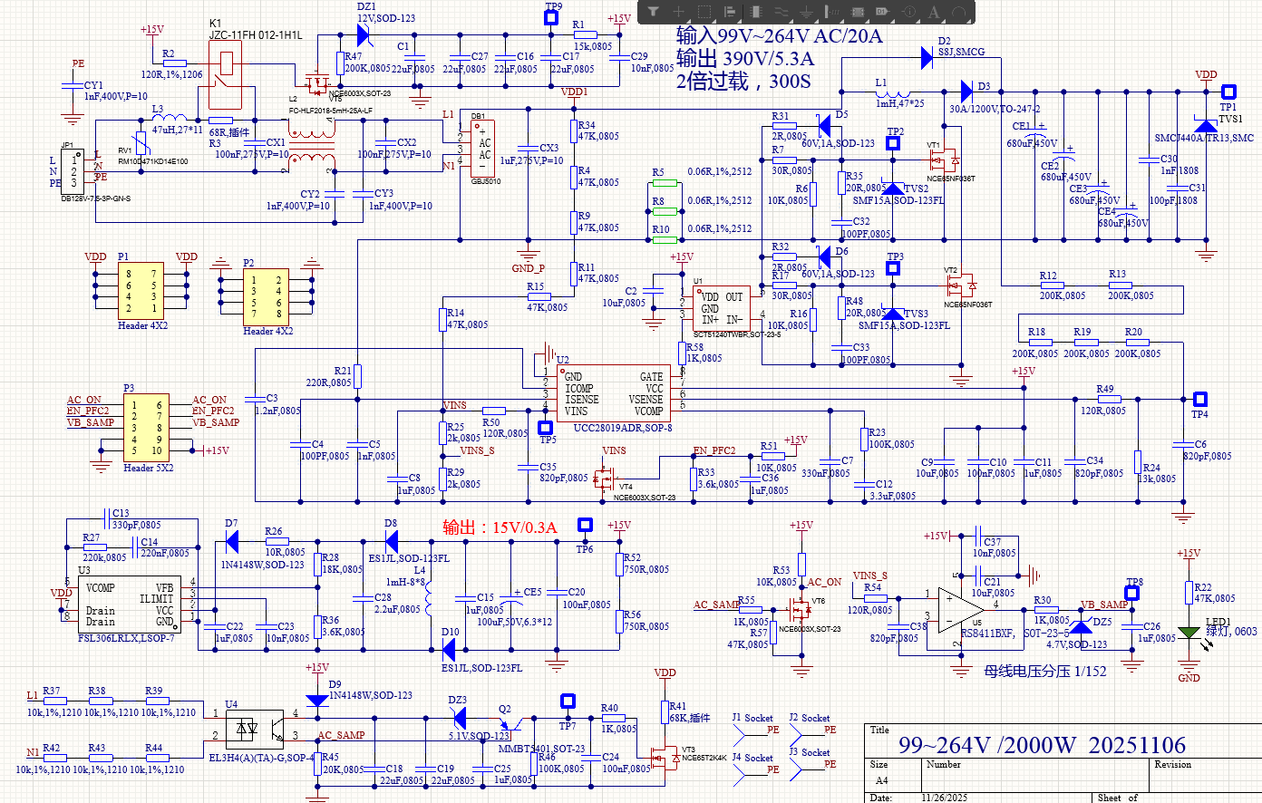 我用 UCC28019 设计的PFC 电路,原理图如下
