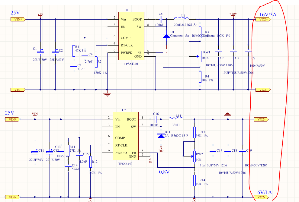 输入为28V,输出为16V/3A,带载时出现占空比不稳定的现象。工作偏绿为560K,图中的频率为560K,270看,180K等
