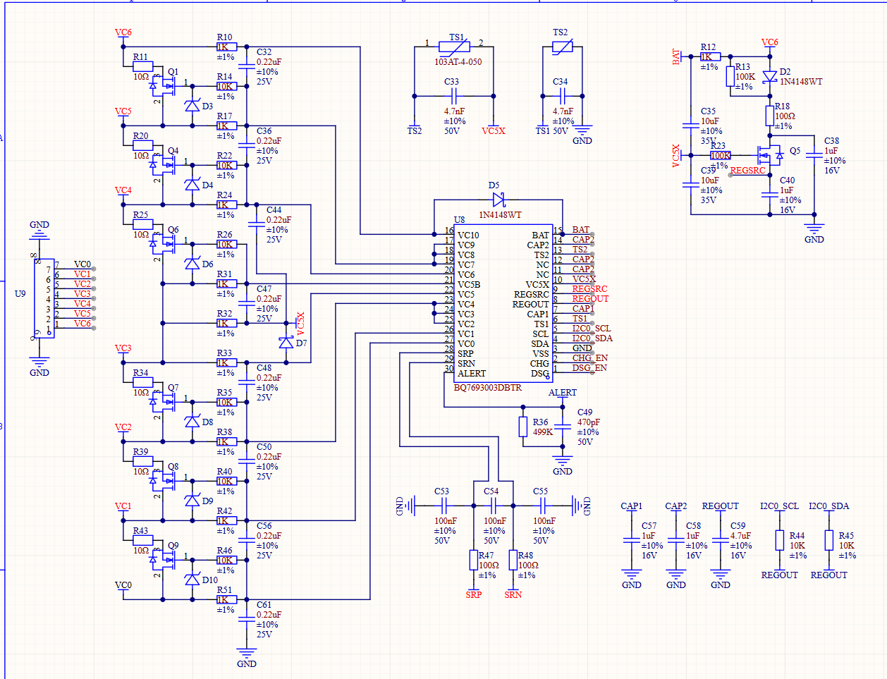 设计为6S,问题出现在开启CB5寄存器,Cell6电压会升高大概40mv,开启CB6寄存器,Cell5电压会升高大概40mv,目前就这两串出现这个问题