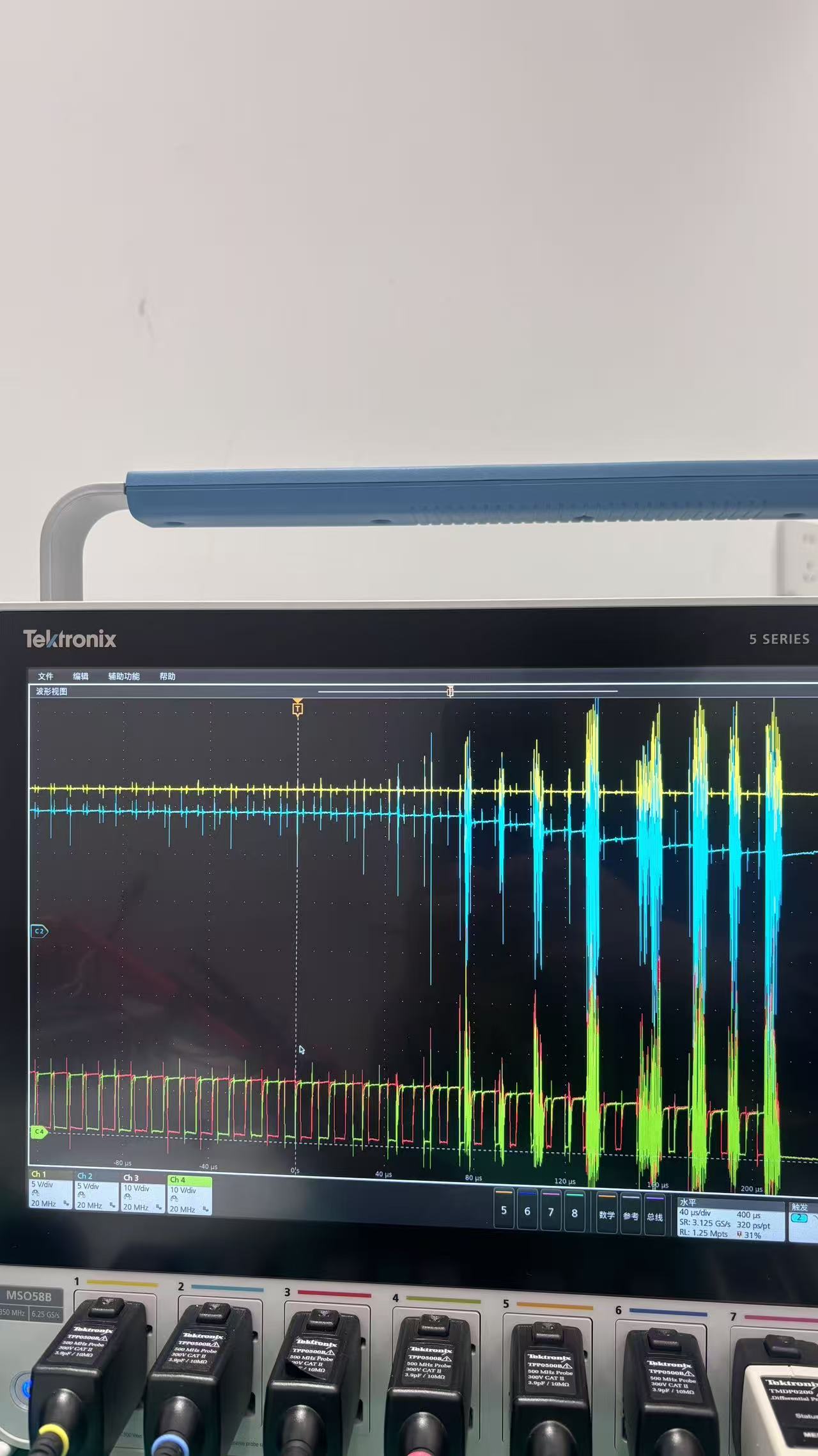 黄色为15V,蓝色13V,红色和绿色为两路PWM,DUTY逐渐加大,13V被拉低,PWM控制混乱,直到UCC28070停止工作,电压恢复后循环重复,我试图提高13V的电流输出能力,但直接烧毁了MOS管,请问我的设计哪里出了问题,我是按照推荐参数设计的