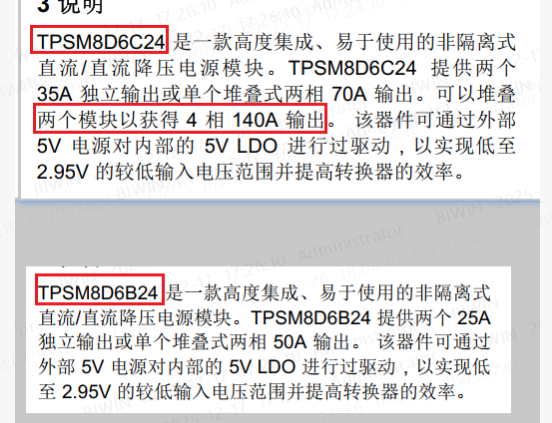 你好,我在TPSM8D6C24的手册中看到C24可以2个模块堆叠实现4相140A输出,