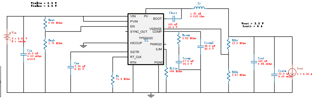我用WEBENCH设计了个电路,5v输入3.3V 5A输出电源,但是电源输出电流达不到要求,一加上负载电源就鸣叫,电压被拉低。负载电流并不大,2A都不到。但是使用8V以上输入就能够正常工作。为何呢?这款电源能做低压差的DC-DC吗?