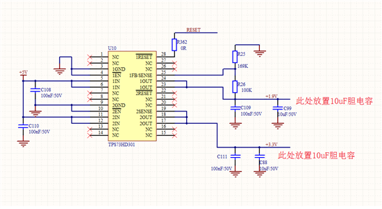 TPS73HD301的28#管脚输出复位信号(低电平),不知道什么原因!