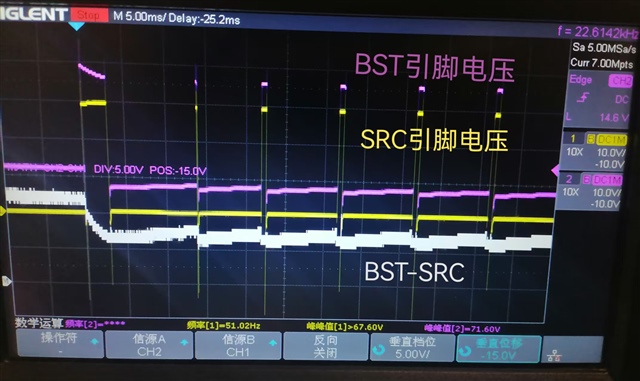 这里你说它工作正常,但看起来BST-SRC=0V,BST和SRC都显示30V?(BST应比SRC高~10V)