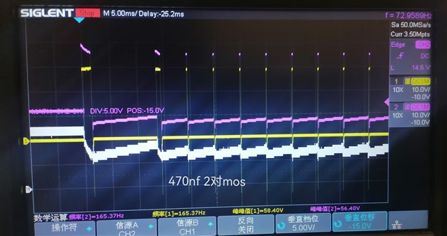 我尝试将BST电容由1uf增加到10uf,驱动2对mos管也不行。上面波形是EN=1时,不同电容对应的 BST SRC引脚的电压。