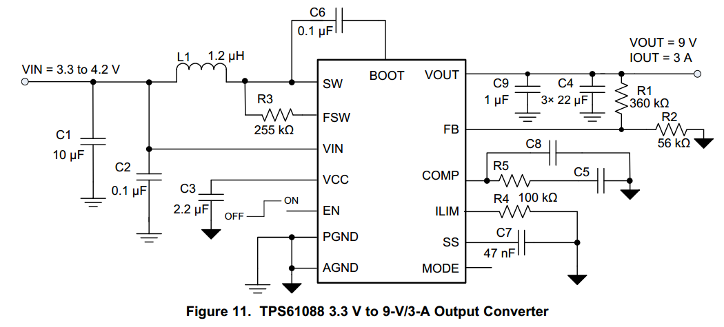 输出电压是9V,最坏的情况就是3A。输入电压最小就是3V。您能帮我算一组电阻、电容的值吗?
